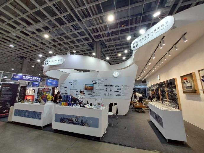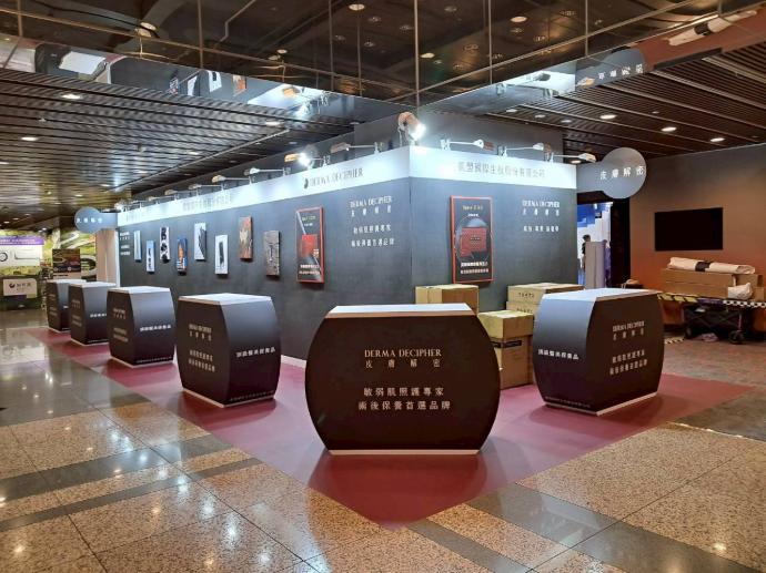 針對 TICC 等大型開放場域,利用大面積壁布輸出包覆,將品牌故事視覺化。搭配多組蜂巢板異型櫃體,不僅增加展位的層次感,更能有效引導人流駐足觀看,大幅提升品牌曝光效益。