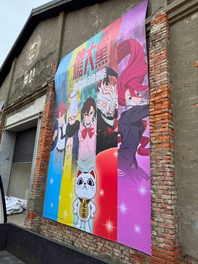 針對華山紅磚倉庫入口,提供大型異型裁切視覺包覆。我們採用高精度數位裁切技術,精準還原品牌標誌與角色輪廓。專業的戶外防候施工,確保在華山高人流環境下依然穩固安全,從入口就為展覽注入最強大的集客能量。