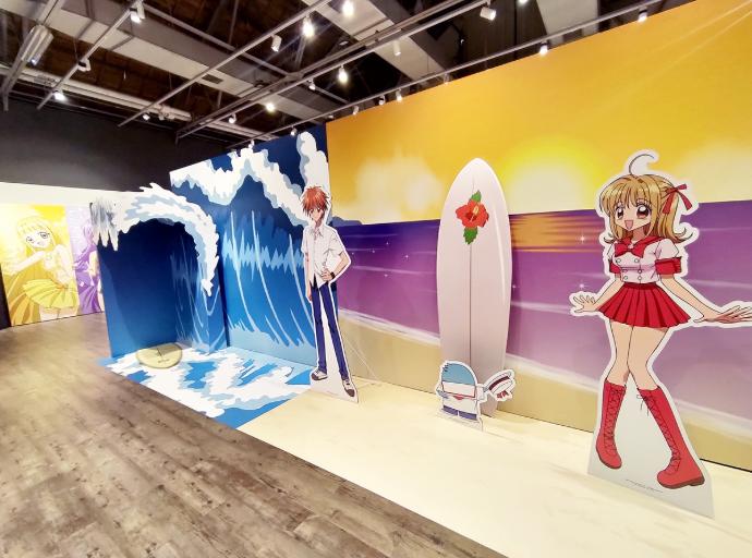 從背景背板、立體海浪結構到沙灘氛圍營造。我們擅長處理大型牆面拼縫與異材質道具整合(如衝浪板、立體浪花),將原本單調的倉庫空間,轉化為讓粉絲瘋狂的 1:1 動畫世界。